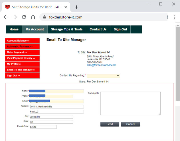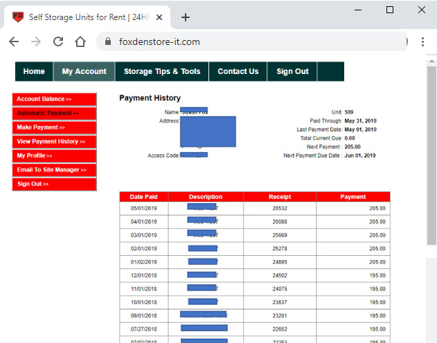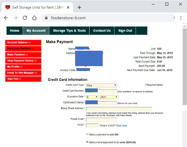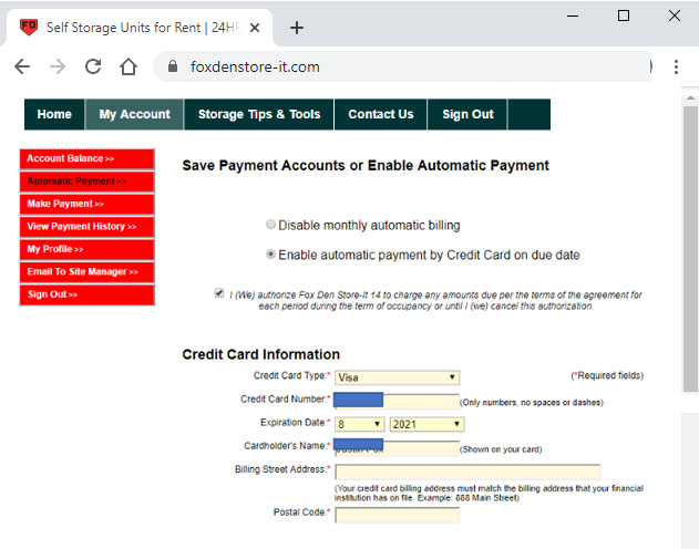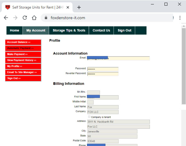 Your Fox Den Store-It Account Online